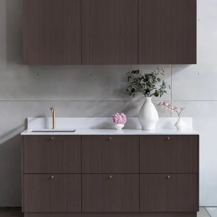 Pure ist eine Fassadenform mit glatter Oberfläche. Sie können ihn mit einem Griff zum direkten Anschrauben an die Fassade verzieren. Sie können wählen, ob Sie die Vorderseite rechts oder links montieren möchten. Zu ergänzen mit Scharnieren, die separat bei Leroy Merlin erhältlich sind