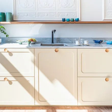 Classic Pop ist eine Fassadenform, deren Oberfläche in einem 5 cm starken Rahmen abgerundet geformt ist. Sie können es mit einem Griff verzieren, der direkt an die Tür oder Schublade geschraubt werden kann. Zu ergänzen mit separat bei IKEA erhältlichen Scharnieren