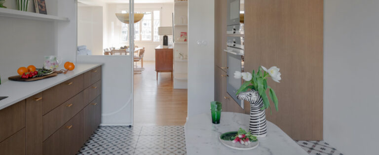 Appartement 77m² : Une cuisine d’exception avec des caissons Leroy Merlin.