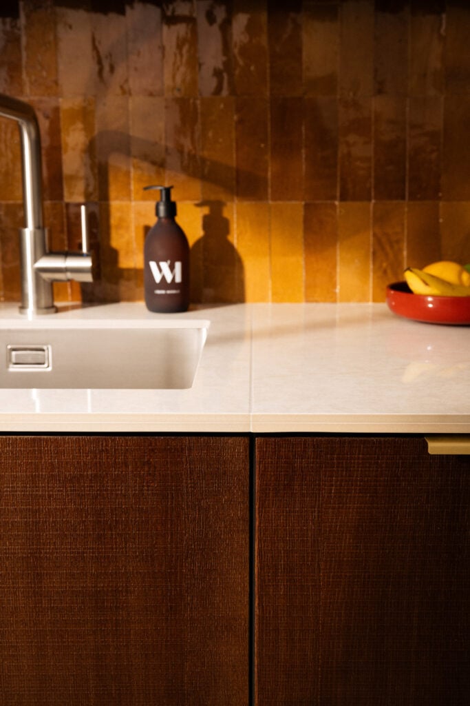 La céramique séduit par ses lignes nettes et son rendu contemporain, directement inspiré des matières naturelles. Elle apporte une écriture sobre et élégante, idéale pour structurer l’espace sans l’alourdir.